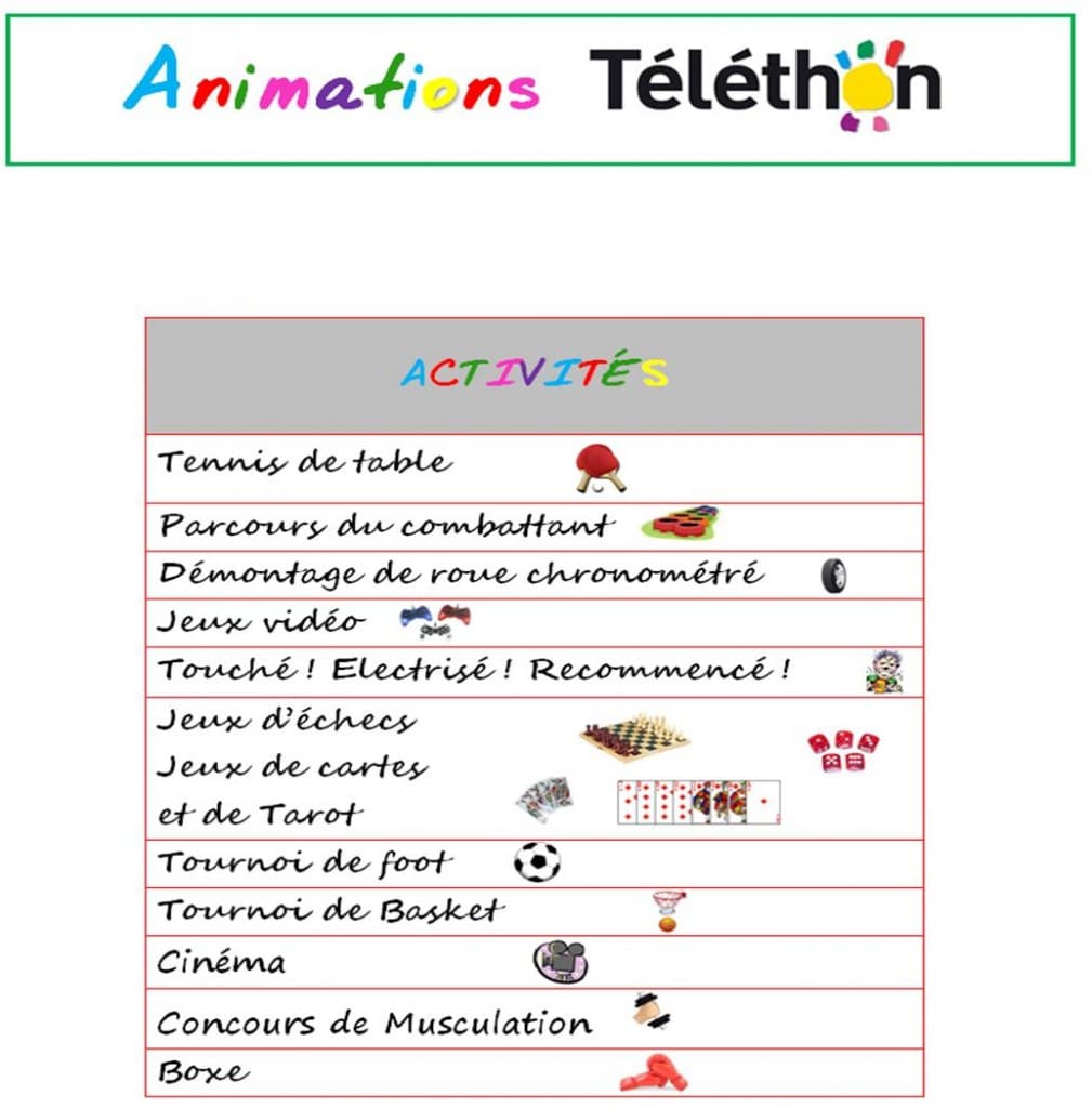 Quelques images des demi-journées d’activités organisées les vendredis 11 & 18 décembre 2015 au profit du Téléthon